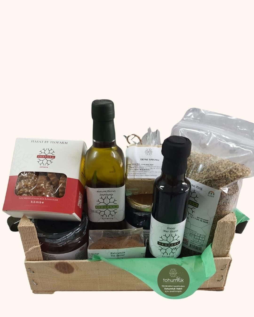 Hatay'ın bereketli Amik Ovası'ndan ve binlerce yıllık zengin mutfak kültüründen doğan en otantik lezzetleri sizin için bu gurme sepette bir araya getirildi. Geleneksel yöntemlerle, "Geçmişten Geleceğe Lezzetler" felsefesiyle ve Teofarm çiftliklerinin doğallığıyla hazırlanan bu özel paket, sizi Antakya'nın verimli bahçelerinden sofralarına uzanan eksiksiz bir gastronomi yolculuğuna çıkaracak.